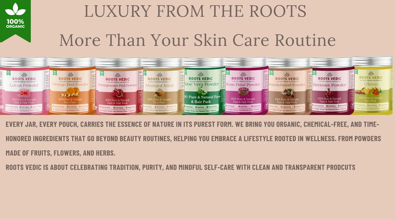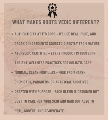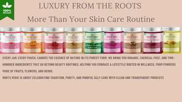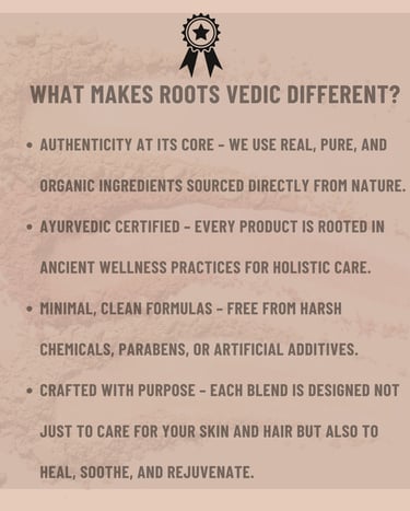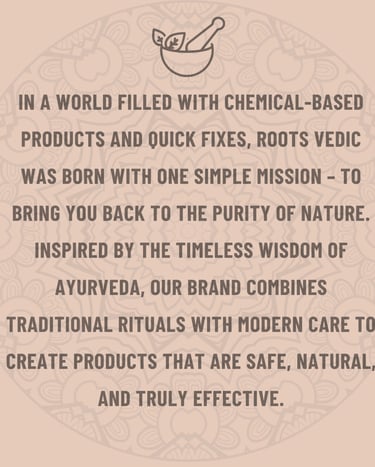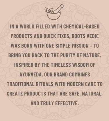 At Roots Vedic, every product begins with a simple promise — purity first. We carefully source natural, chemical-free ingredients and craft them using traditional methods to preserve their true benefits. From nutrient-rich powders to refreshing floral waters, cold-process soaps, and soothing gels, each formulation is made to nourish your skin and hair gently yet effectively. Our products are not just made — they are thoughtfully created to bring nature’s goodness straight to your daily wellness rituals.